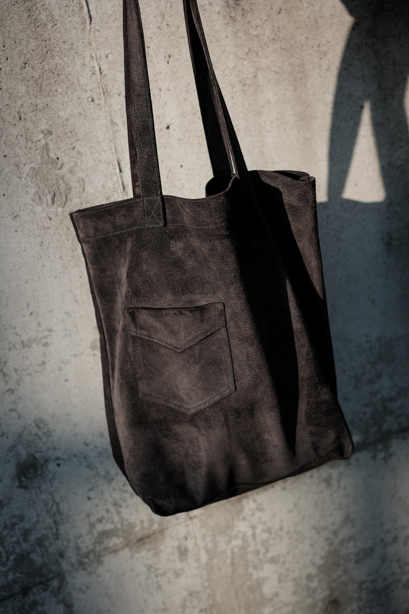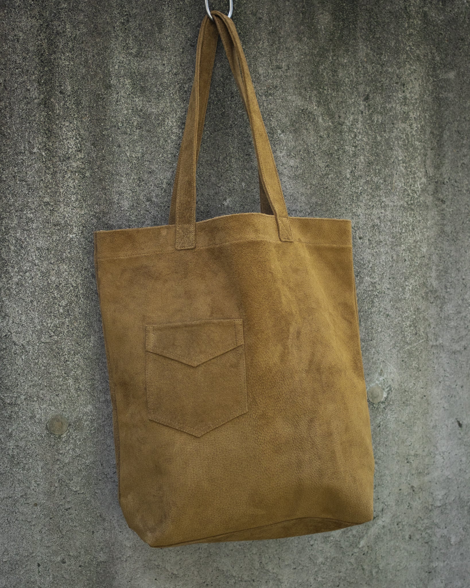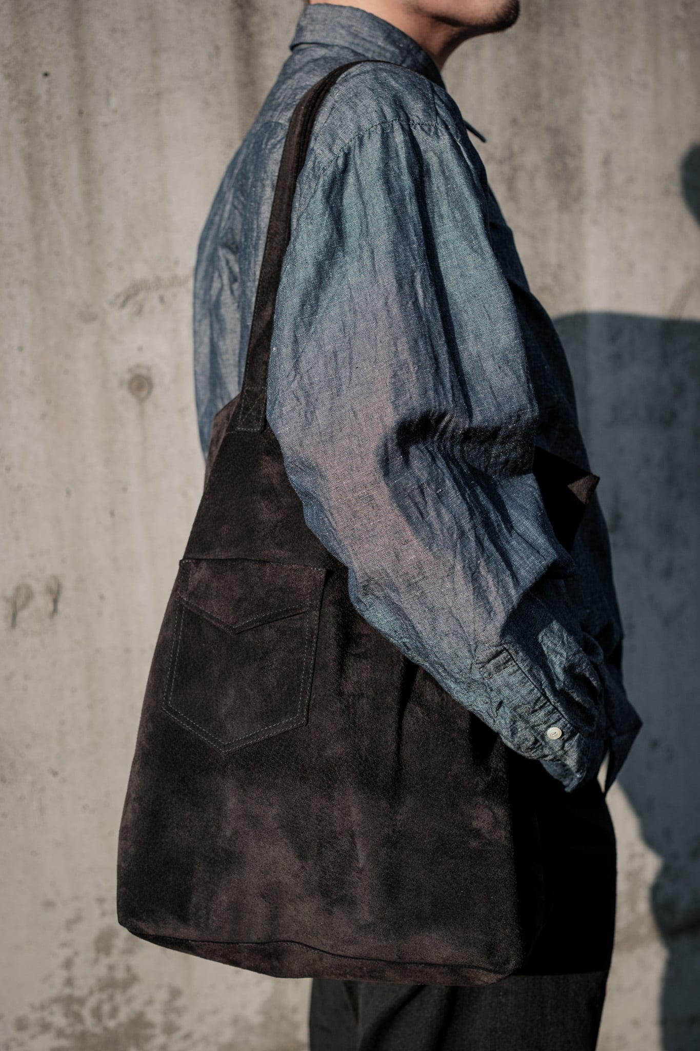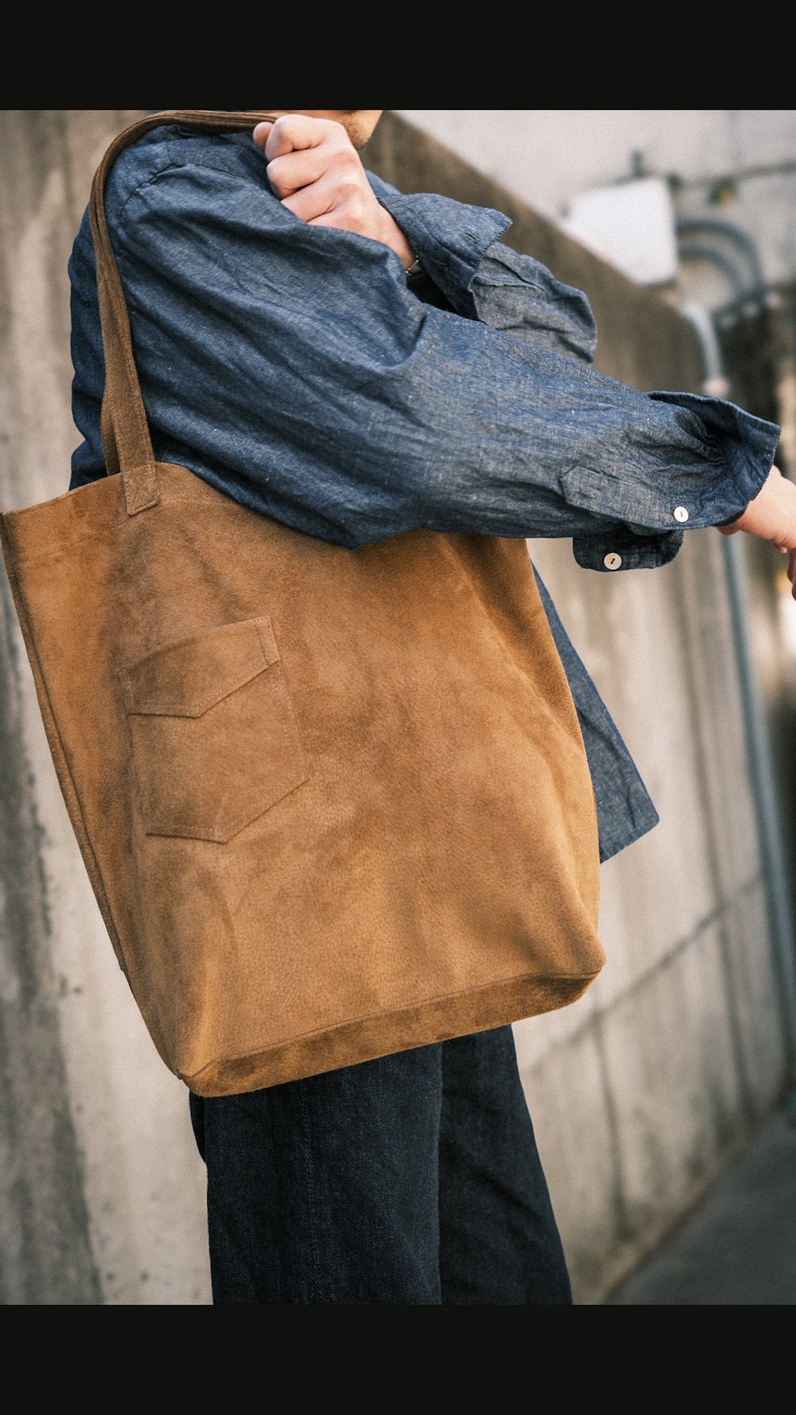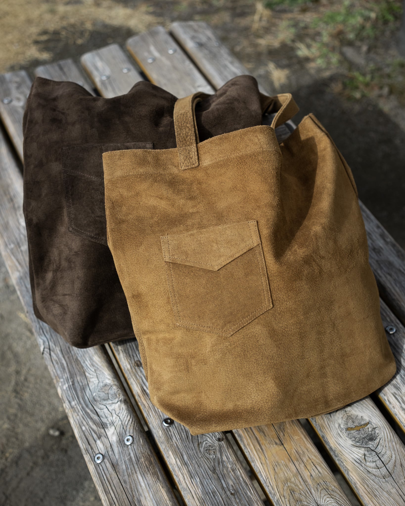 レザーシャツの発想から生まれた、柔らかなスエードのトート。